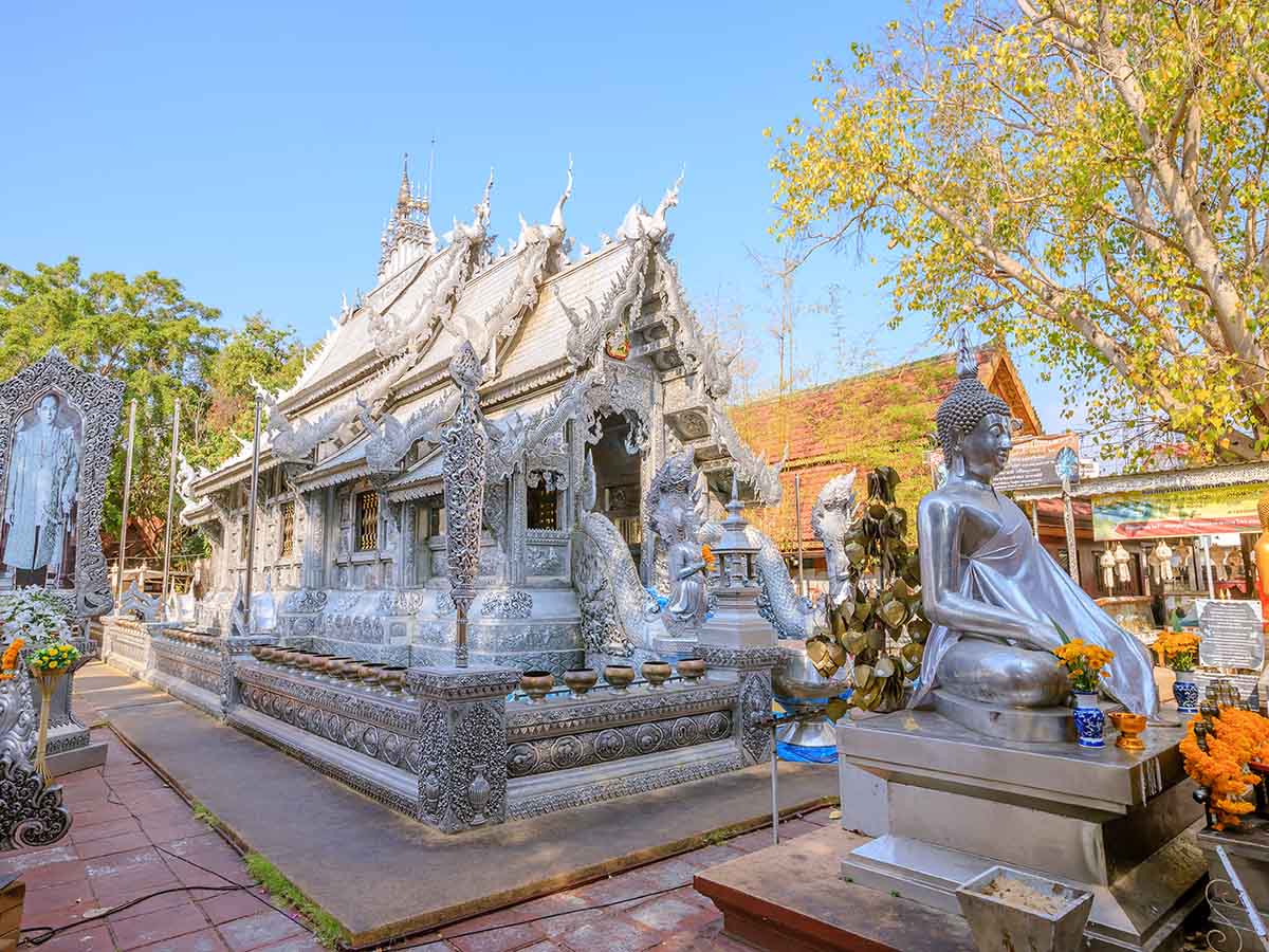 “วัดศรีสุพรรณ” วัดเก่าแก่แห่งหนึ่งของเชียงใหม่ ก่อตั้งมานานนับ 500 ปี วัดแห่งนี้เป็นที่ยืนยันว่า เครื่องเงินมีความสำคัญเป็นอย่างมากในจังหวัดเชียงใหม่ อุโบสถเงิน ที่ตั้งตระหง่านอยู่ภายในบริเวณวัด นับเป็นอุโบสถที่ทำจากโลหะหลังแรก มีการสลักลวดลายสวยงาม ทั้งนี้ยังเป็นที่ตั้งของบ้านครูช่าง พิพิธภัณฑ์ภูมิปัญญาสล่าสิบหมู่ล้านนา
